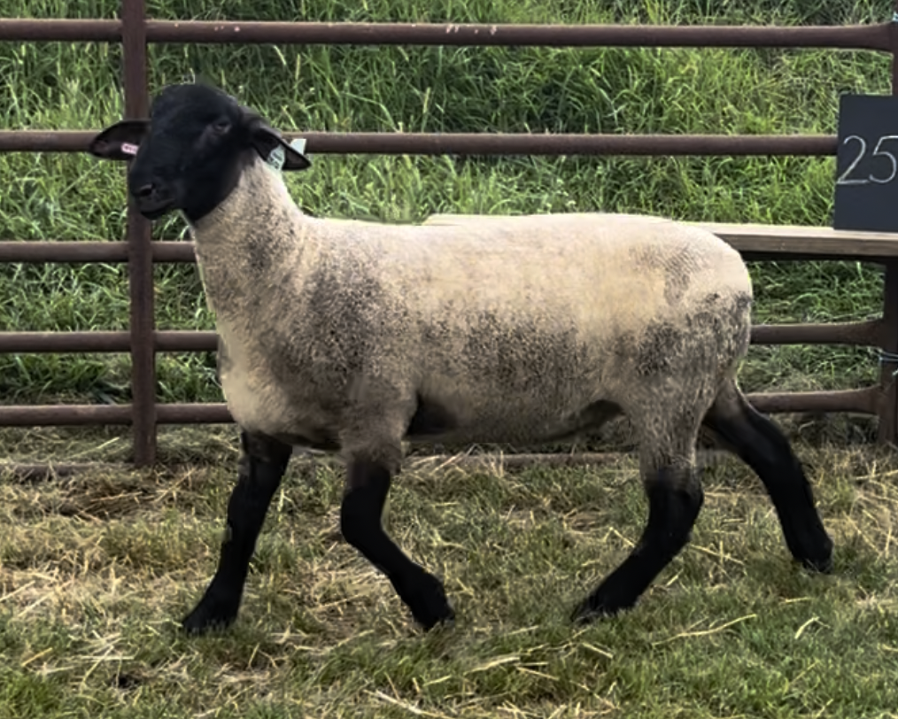 Twin to the 25061 ewe in our sale and out of the same ewe that gave us the high-selling ewe in last year’s sale.